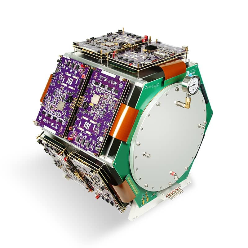 本解决方案采用我司自研的Micromegas探测器技术,使用高颗粒度的条读出方案(条间距650um),实现X、Y方向的二维读出;同时适配高密度信号采集电子学系统(1024通道,40MSPS),通过并行系统同步处理两端信号。这种设计实现TPC系统的高位置分辨率和粒子鉴别能力,尤其适用于低截面核反应和高能物理实验中的复杂径迹重建。